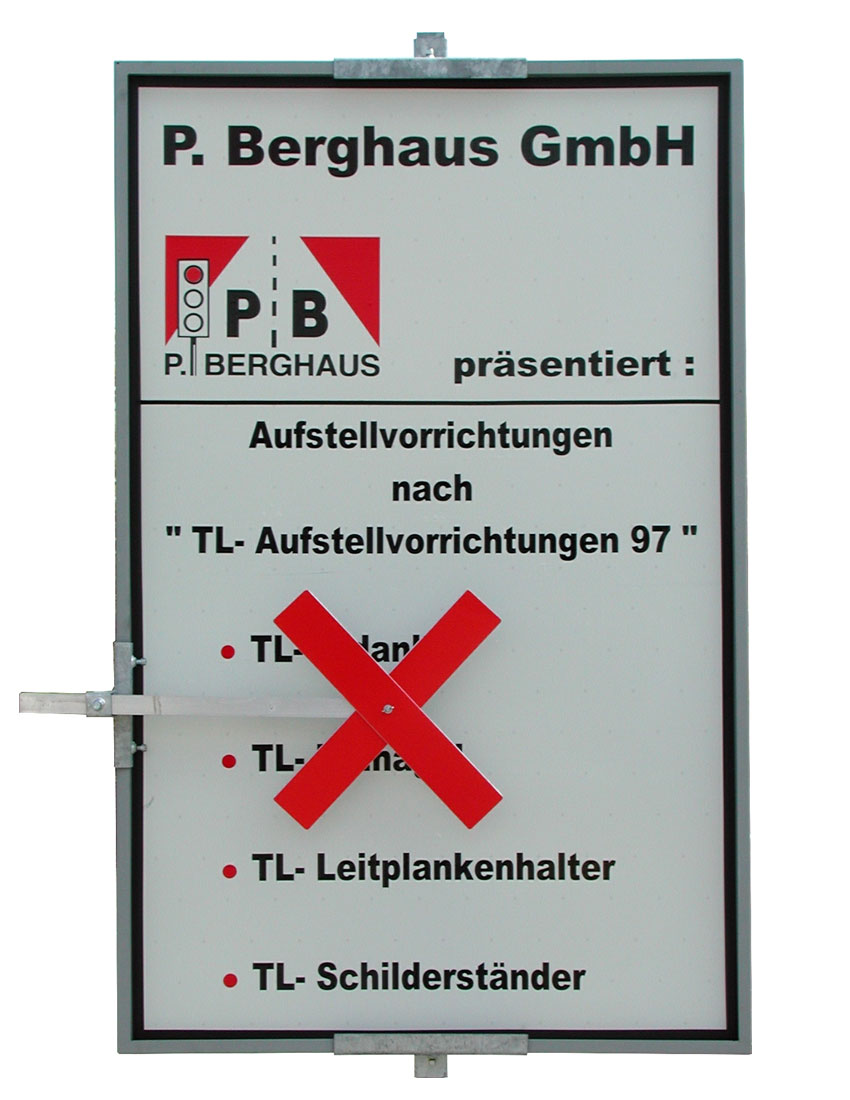 Die Schenkel des Kreuzes können im Winkel beliebig verstellt und der Auslegerarm am Halter verschoben werden. So lassen sich gezielt einzelne Ziele auf Verkehrslenkungstafeln, Vorwegweisern oder Großbeschilderungen usw. außer Kraft setzen.