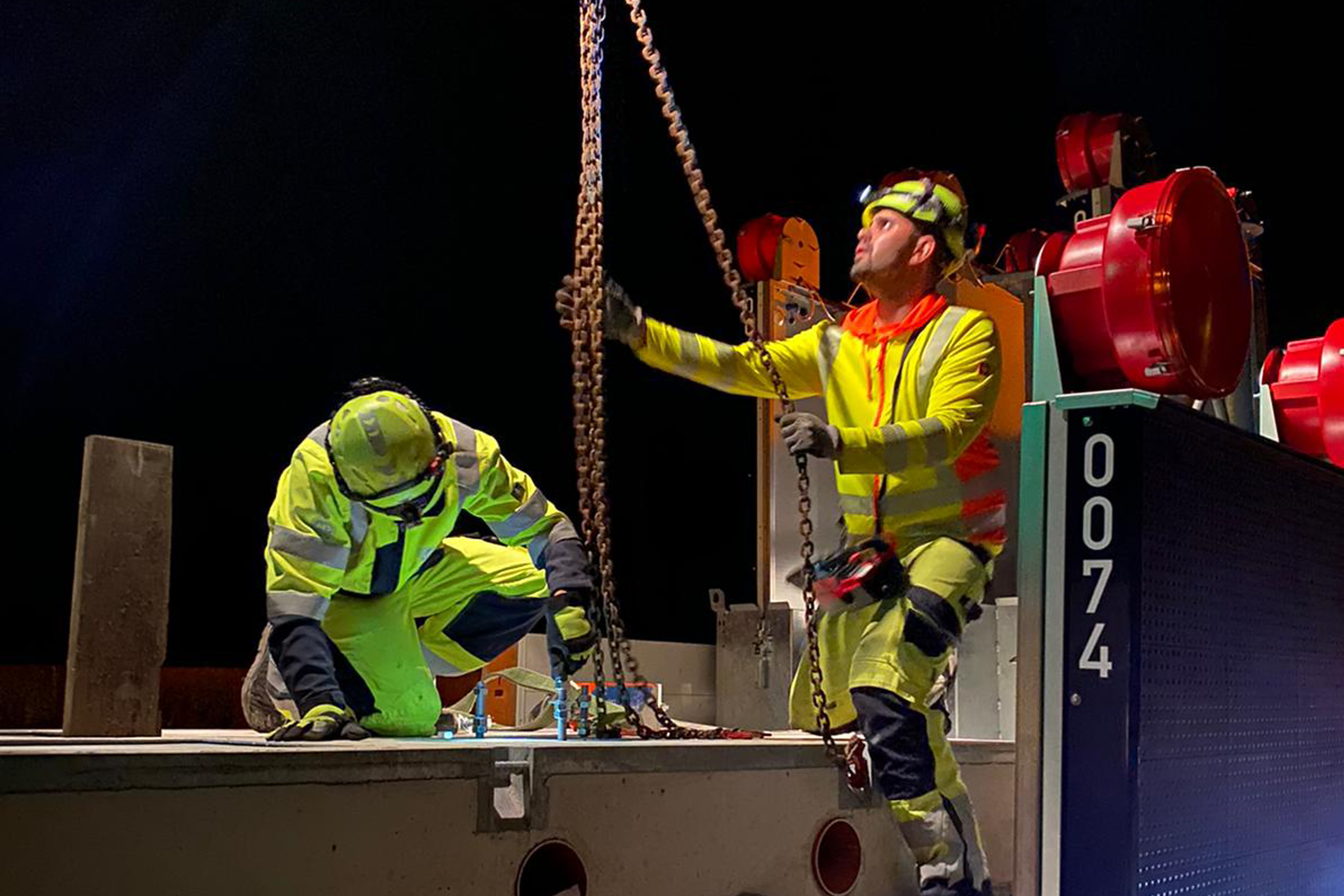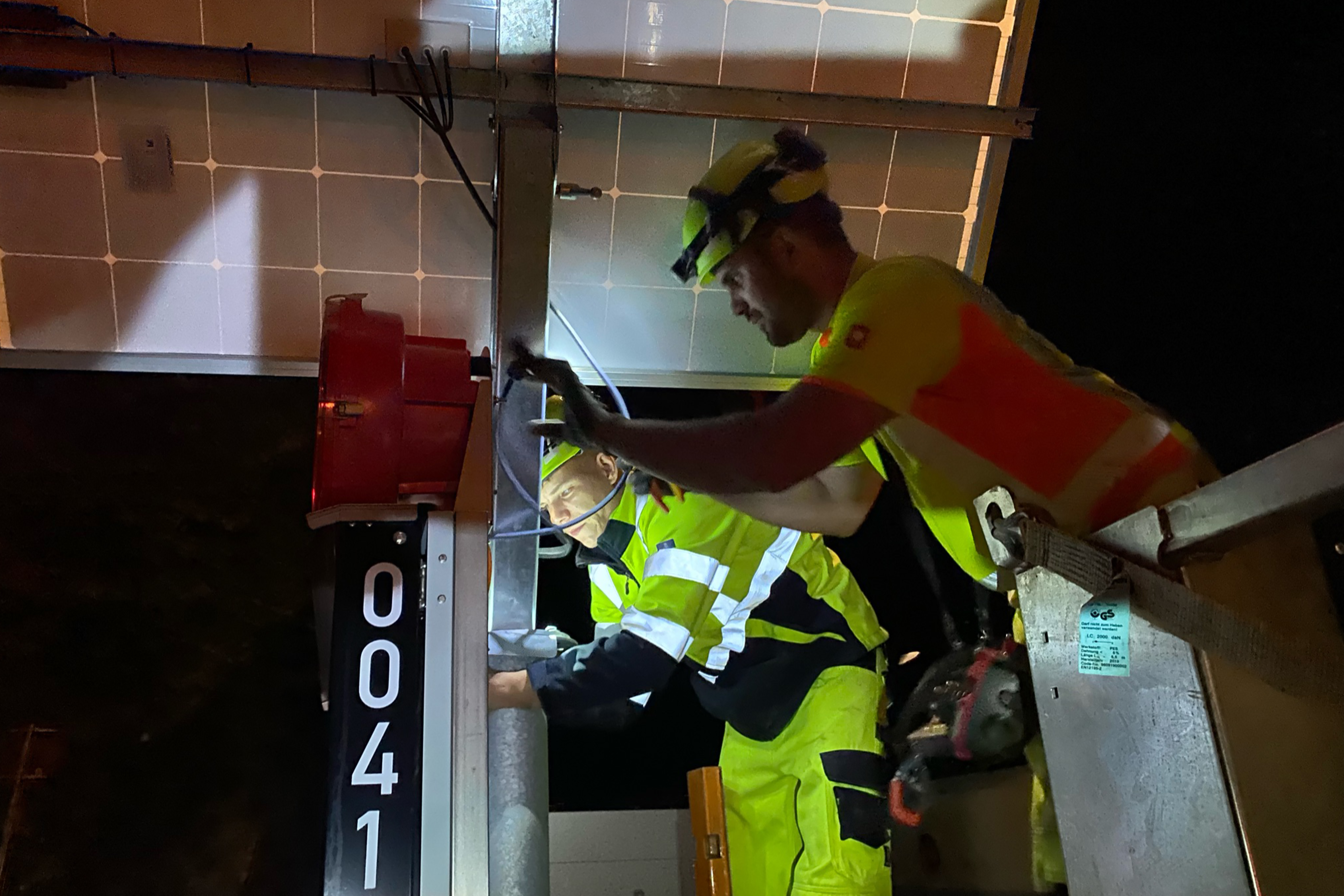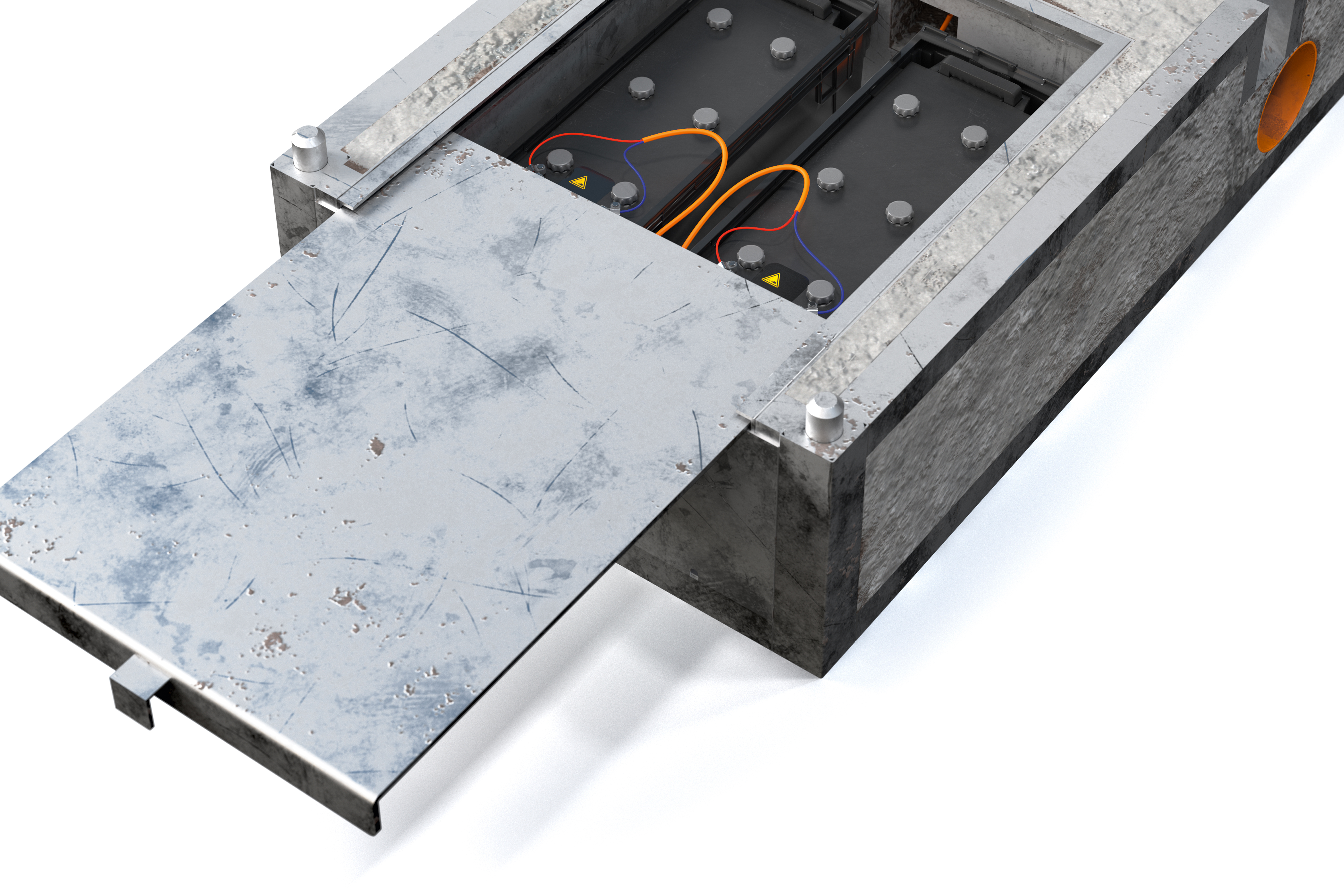 Der Aufbau der Anlage erfolgt durch ein ausgeklügeltes System, um die Sicherheit der Monteure zu gewährleisten. Weder Klettern noch Hubsteiger sind erforderlich. Das Rundrohr wird einfach ineinandergeschoben und in die Höhe gebaut. Ein automatisierter Lasthaken am Kran des LKWs ermöglicht das Überführen und Einhängen der Tafel auf Knopfdruck. Das macht unser System einzigartig, da die Montage ohne gefährliches Klettern am Mast auskommt. Das Heben der schweren Tafel übernimmt der Kran. Die Kabel verlaufen innenliegend und sind damit sicher vor Diebstahl oder Vandalismus. Die Batterien sind im stabilen Fuß positioniert und durch das umliegende Beton-Stahl-Gehäuse ebenfalls vor Diebstahl gesichert.