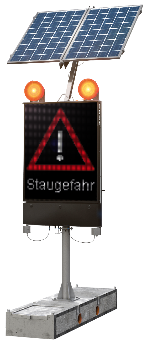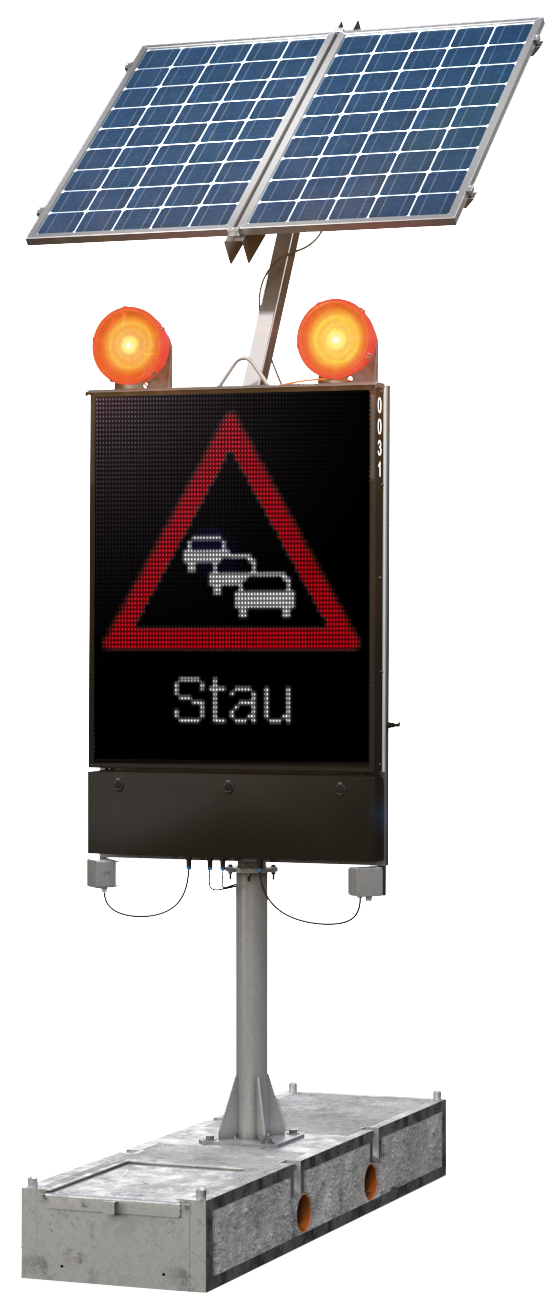 Mobile Stauwarnanlagen, LED-Informationstafeln, mobile Wechselverkehrszeichen mit modernster Sensorik – Verkehrsflüsse werden frühzeitig erkannt und dynamisch gesteuert.