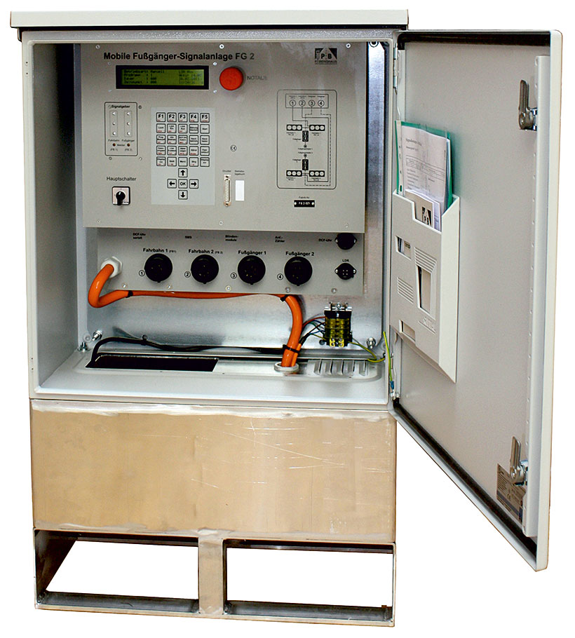 Die kabelgesteuerte mobile Fußgänger-Signalanlage FG2 wird für die vorübergehende Verkehrsregelung an Fußgängerüberwegen (z.B. für die Schulwegsicherung) im Anforderungs- oder Automatikbetrieb eingesetzt.