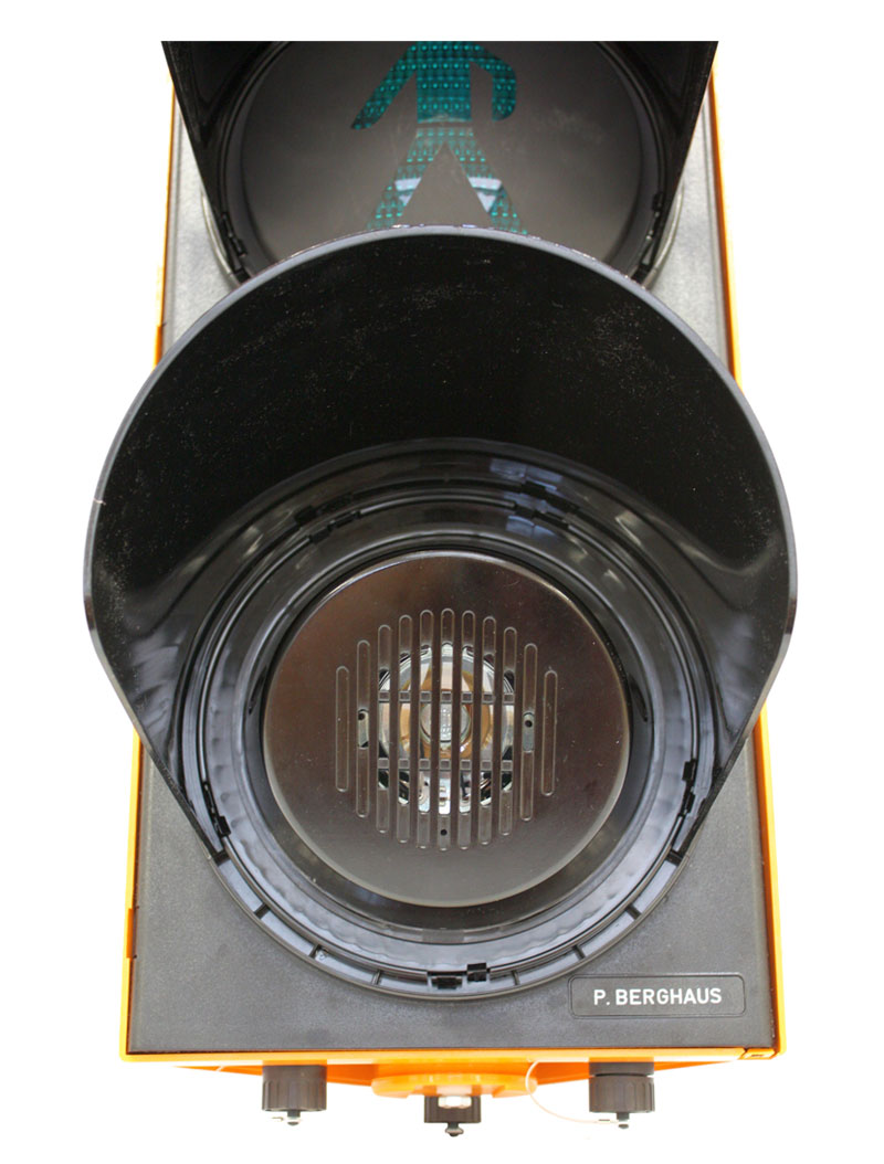 Fully adjustable luminous intensity of the signal heads to the ambient brightness is ensured by the automatic night-time dimming. This results in much longer battery change intervals. The signal time settings are adjusted from 1 to 999 seconds. Blanking with request mode can be activated via a toggle switch. Manual control of the time sequences is also possible. The system operates with fixed cycle periods when set to "continuous request". A digital counter records the pedestrian requests.